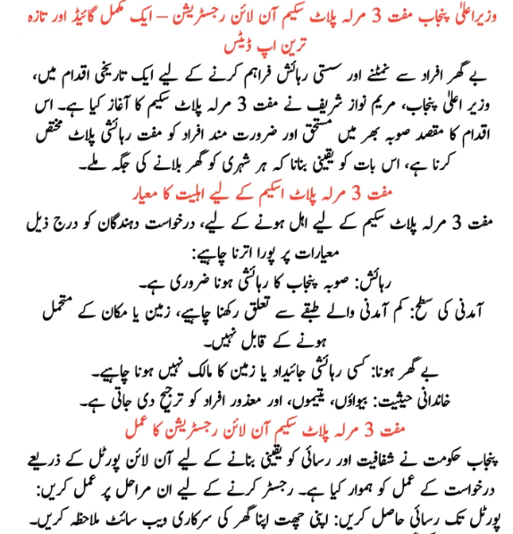 Punjab 3 Marla Plot Scheme for low-income families has been launched under Chief Minister Maryam Nawaz Sharif. Those families who can’t afford land to build their own homes will benefit from this initiative.